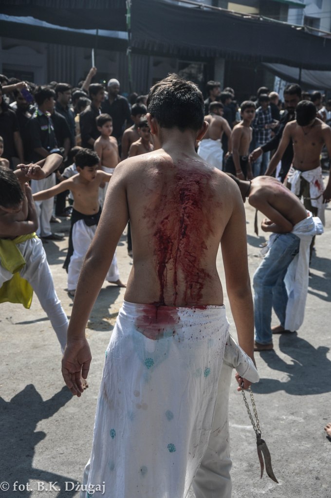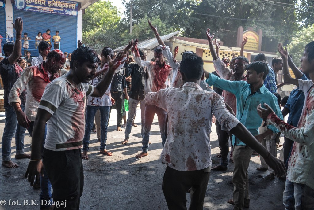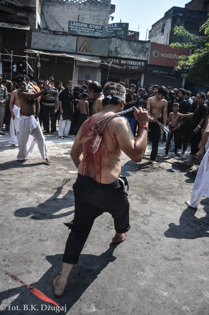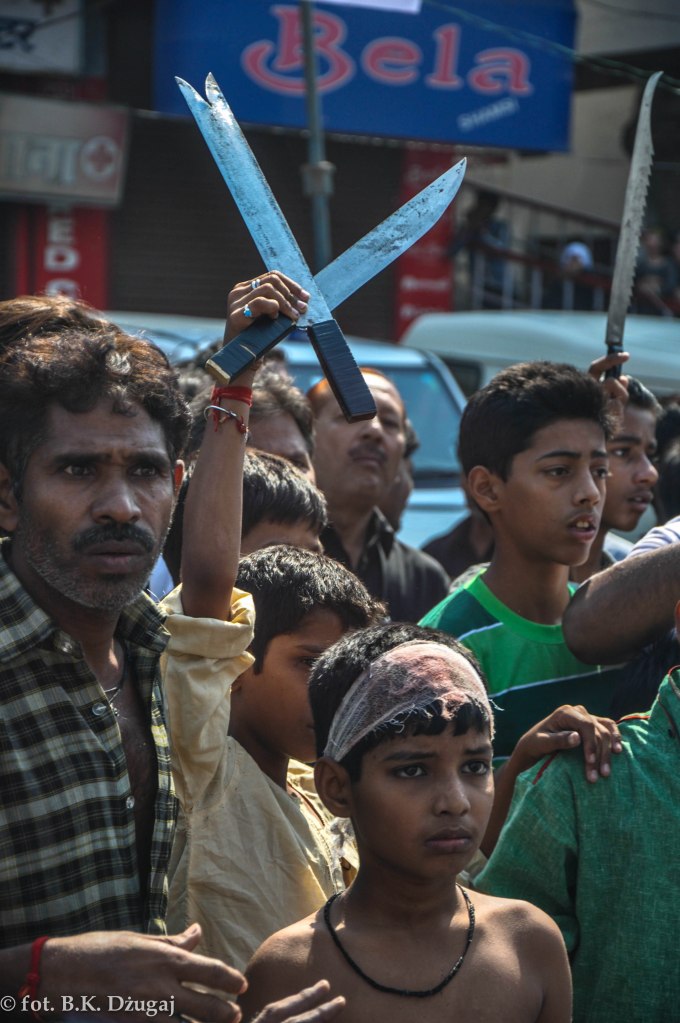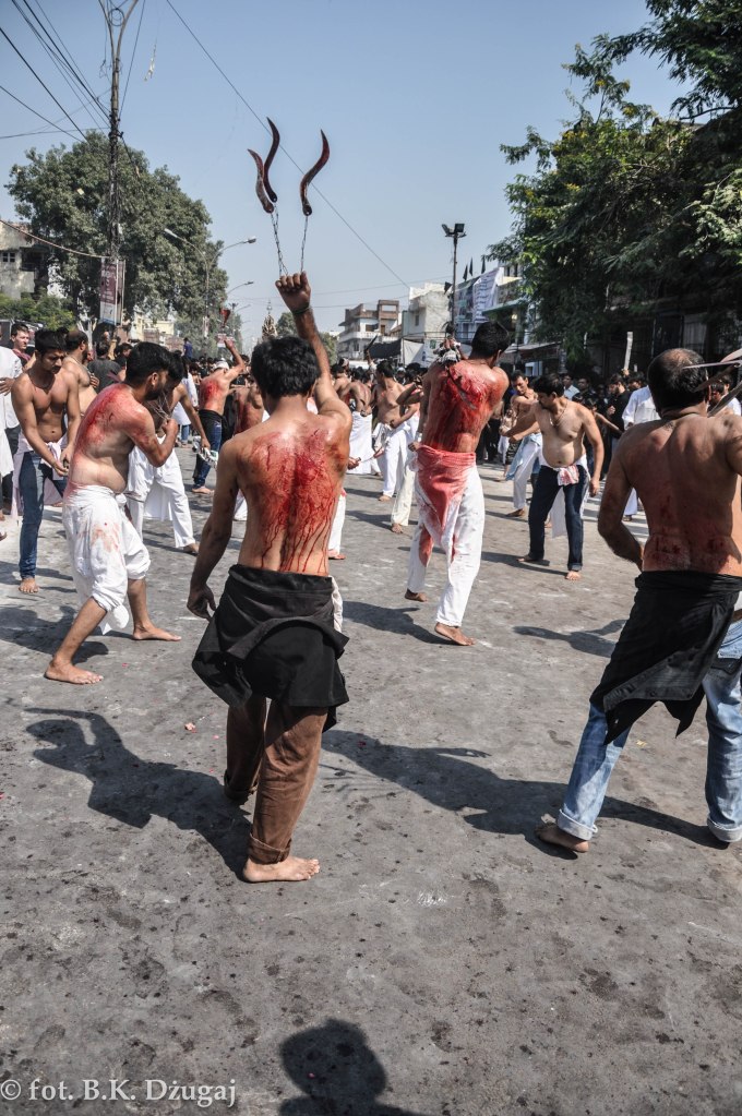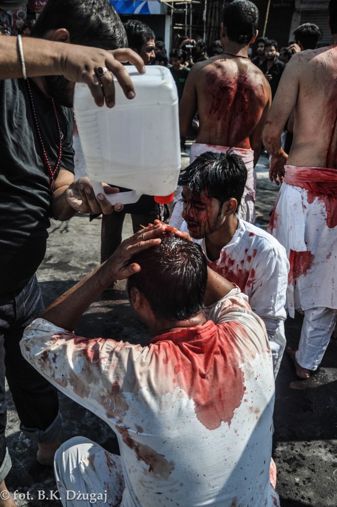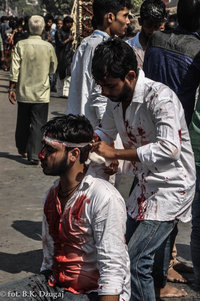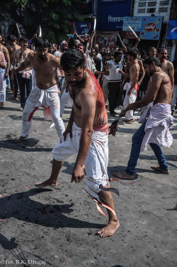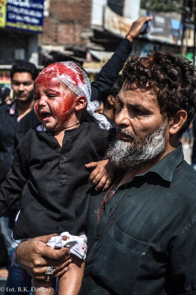 Wlazłam w sam środek procesji. Wystraszyłam się lekko tylko raz, gdy procesję muzułmanów mijał pochód hinduistyczny. Obchody dnia Aszury w 2015 roku zbiegły się bowiem z ważnymi świętami hinduizmu: dasarą oraz durgapudźą. Szyickie procesje spotkały się na ulicach Lakhnau z przygotowywanymi przez hindusów ołtarzami. Różnie mogło się to skończyć, obyło się jednak bez otwartej wrogości. Aszura to jedno z najbardziej emocjonalnych doświadczeń w moim życiu. Krew zmywałam z aparatu fotograficznego jeszcze w pociągu do Delhi, adrenalina opuściła mnie dopiero następnego dnia. Rok później w badaniach terenowych skupiłam się już wyłącznie na performansie, do kwestii szału religijnego zamierzam jednak jeszcze powrócić.