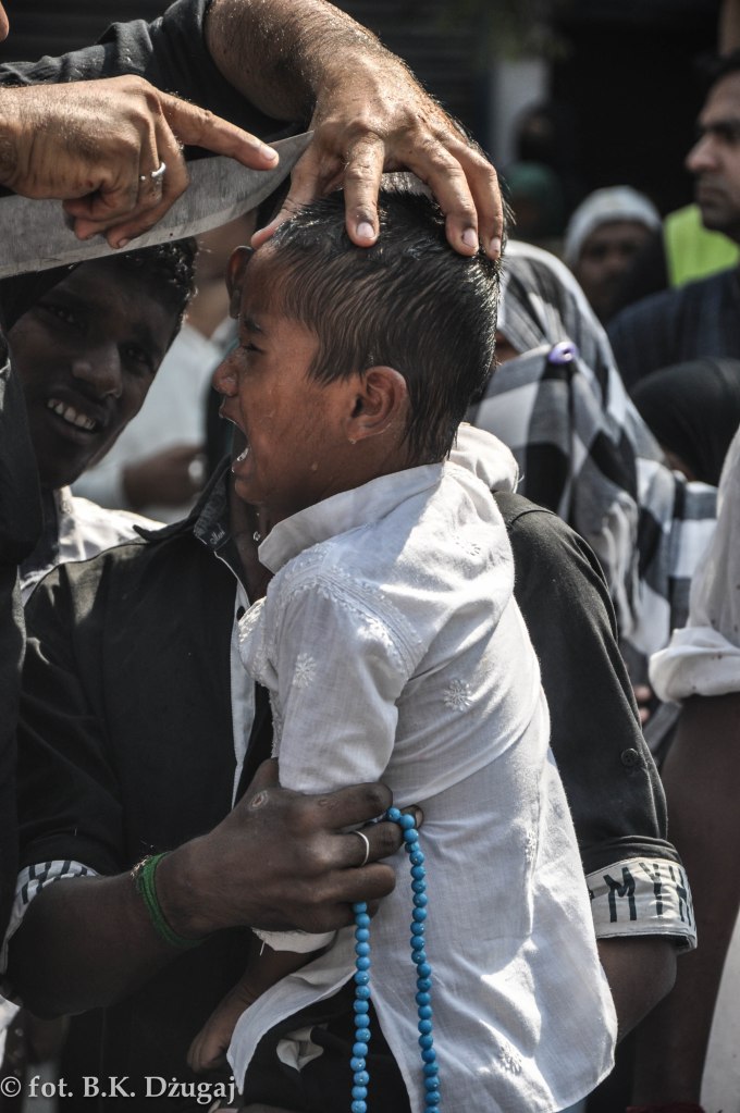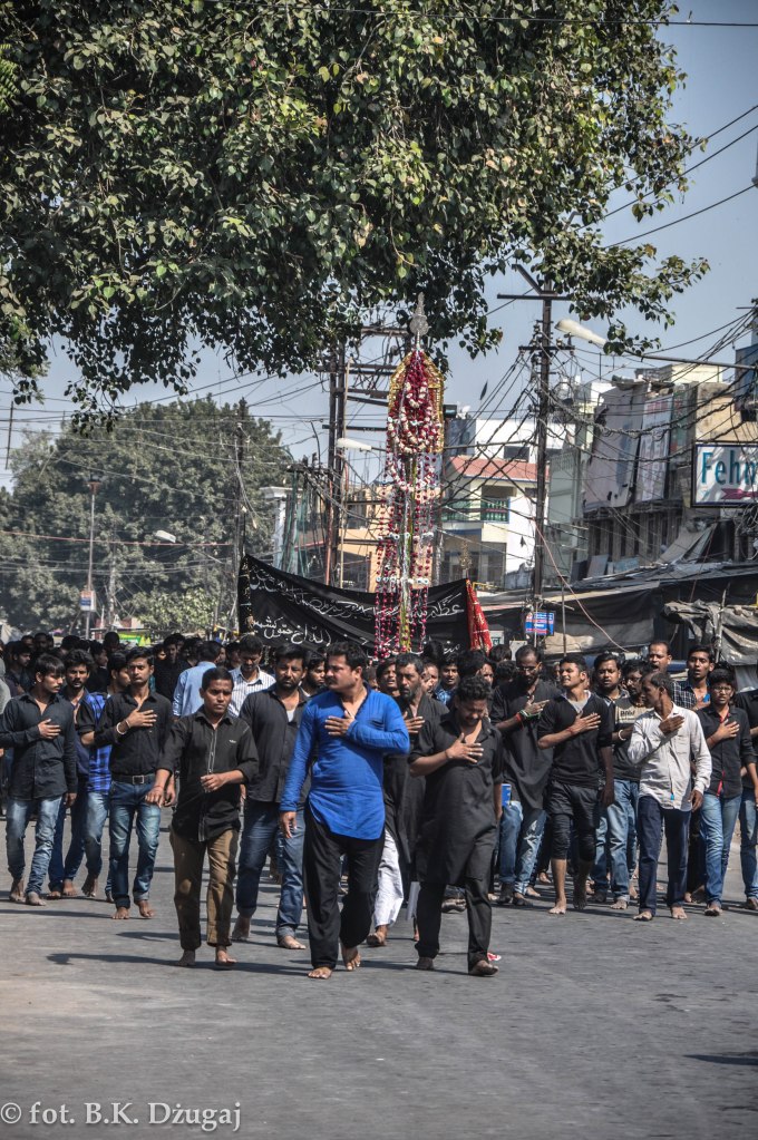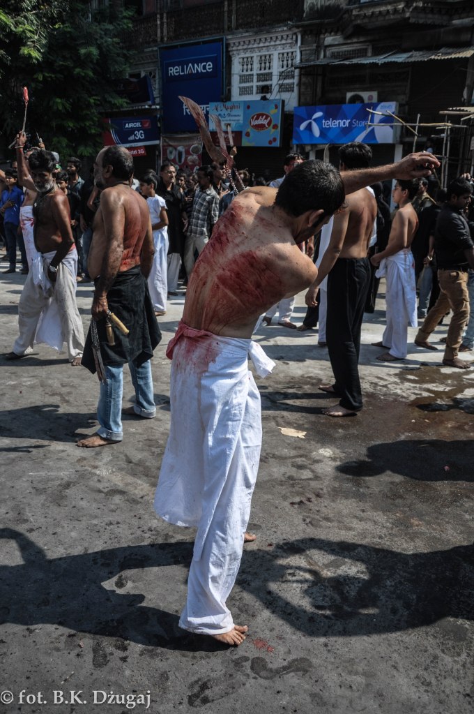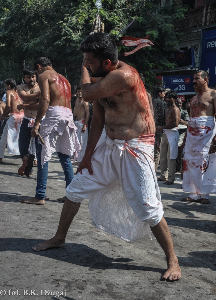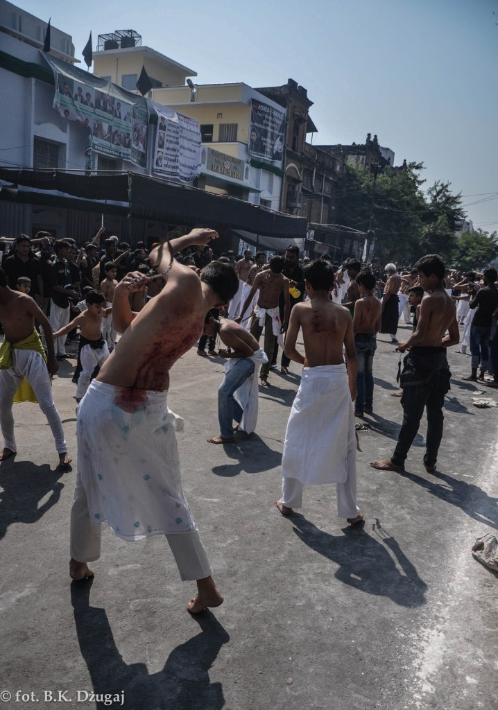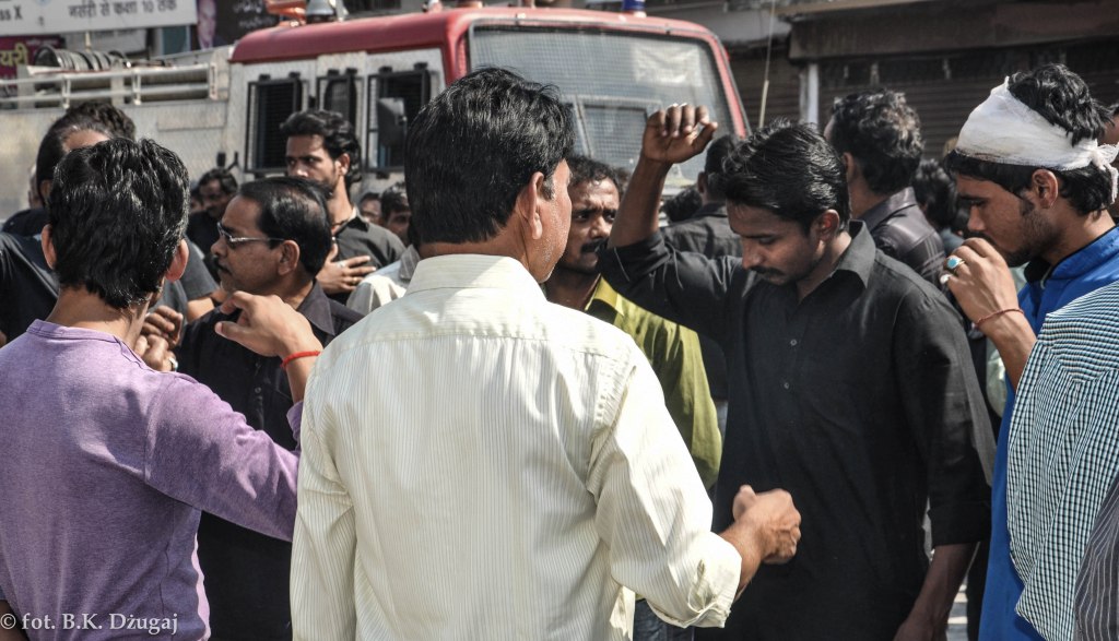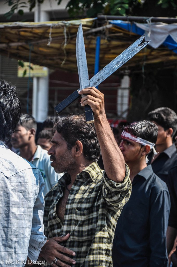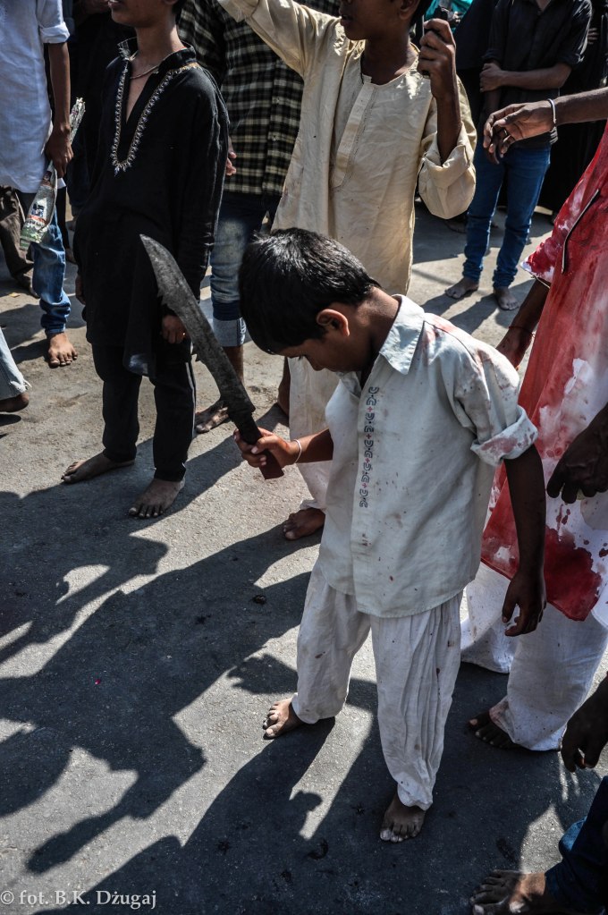 Wlazłam w sam środek procesji. Wystraszyłam się lekko tylko raz, gdy procesję muzułmanów mijał pochód hinduistyczny. Obchody dnia Aszury w 2015 roku zbiegły się bowiem z ważnymi świętami hinduizmu: dasarą oraz durgapudźą. Szyickie procesje spotkały się na ulicach Lakhnau z przygotowywanymi przez hindusów ołtarzami. Różnie mogło się to skończyć, obyło się jednak bez otwartej wrogości. Aszura to jedno z najbardziej emocjonalnych doświadczeń w moim życiu. Krew zmywałam z aparatu fotograficznego jeszcze w pociągu do Delhi, adrenalina opuściła mnie dopiero następnego dnia. Rok później w badaniach terenowych skupiłam się już wyłącznie na performansie, do kwestii szału religijnego zamierzam jednak jeszcze powrócić.