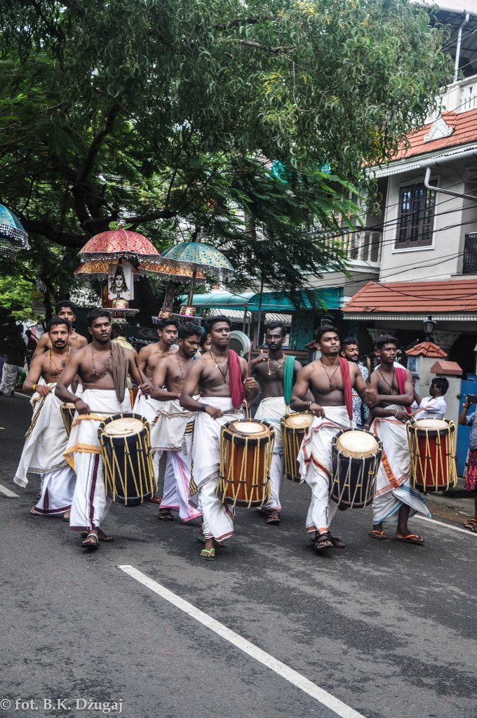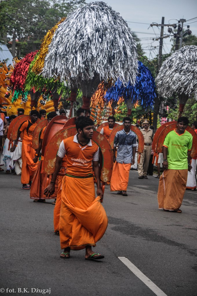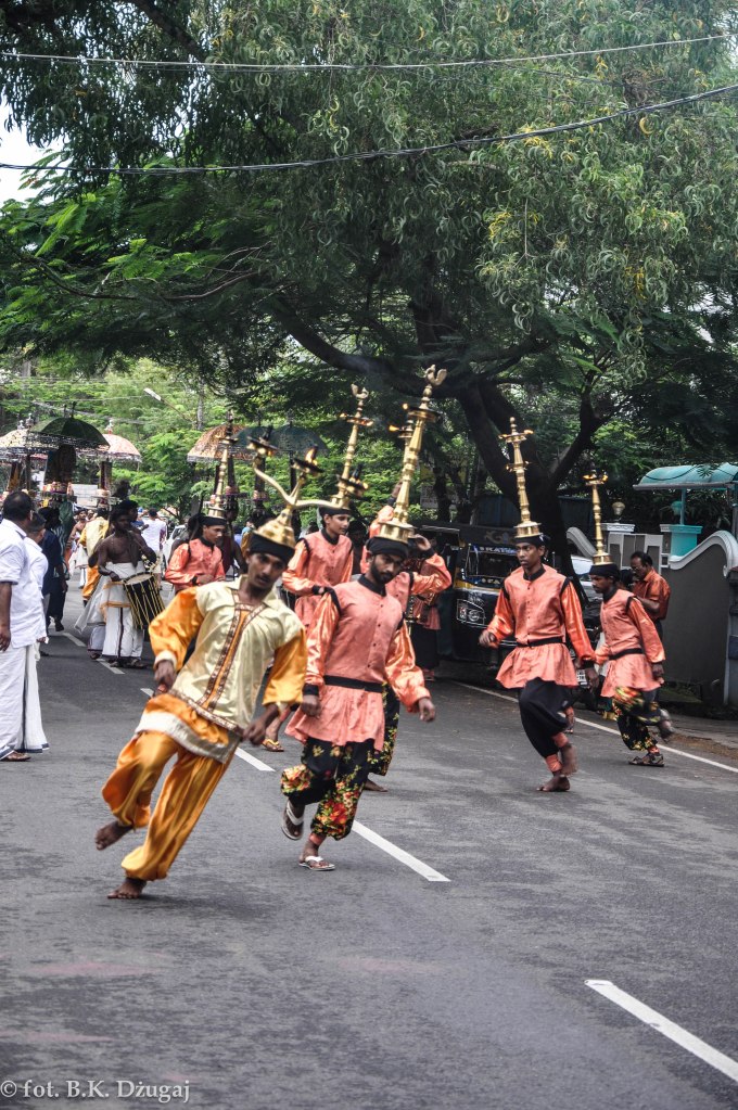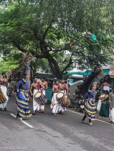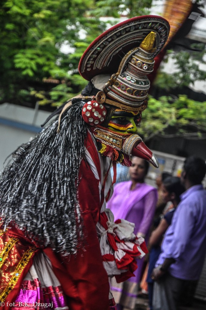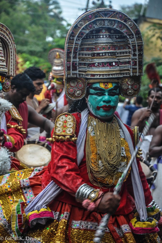 Barwne i głośne parady przechodzą m.in. ulicami starego Koczinu. I to właśnie z tego względu wybrałam mieszkanie w tej części miasta. Do świątyni Thrikkakara dojeżdżałam codziennie przez ok. półtorej godziny, żeby zobaczyć powitanie Vamany musiałam więc wstać o 5 rano. Po powrocie do Koczinu jedyne o czym marzyłam to łóżko i sen. Cudnie mi się spało przy szumie jednego z ostatnich monsunowych deszczy, mimo że upał nie zelżał nawet na moment. Dla odmiany obudził mnie nie głos muezzina z pobliskiego meczetu, lecz dźwięki bębnów. Dupatta na głowę, aparat w rękę i wypadłam prosto w roztańczony korowód przechodzący główną ulicą dzielnicy Fort Koczin.