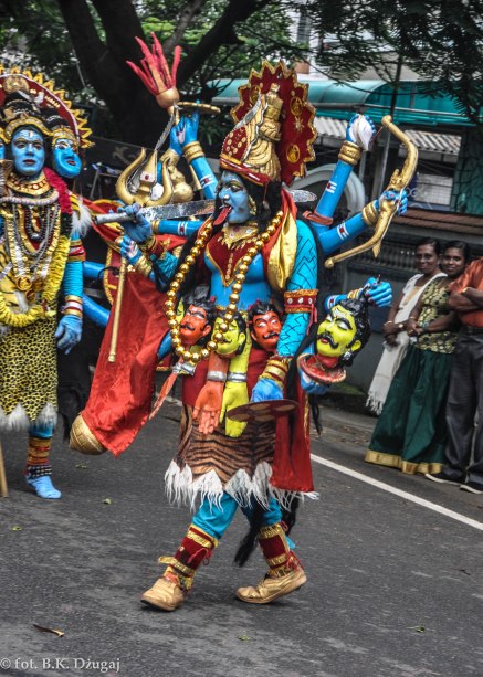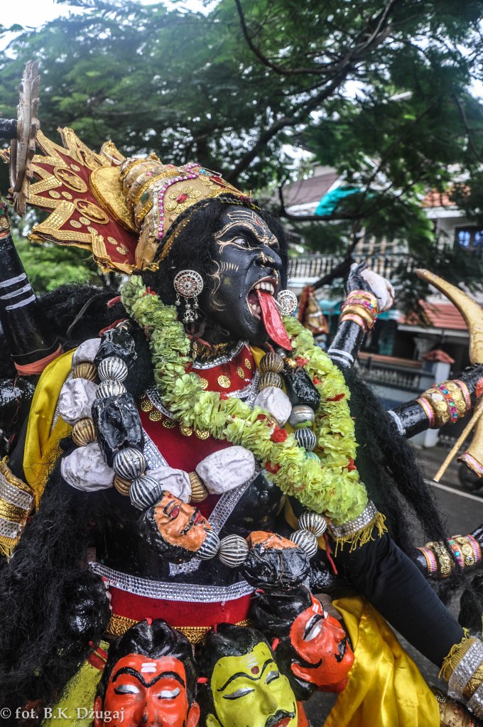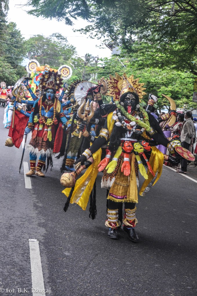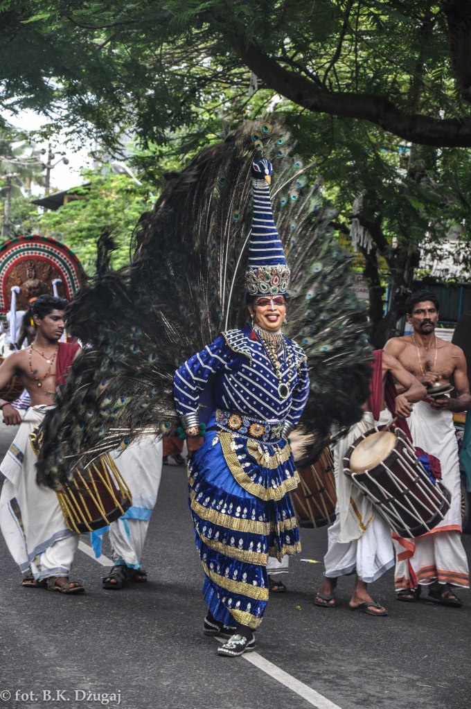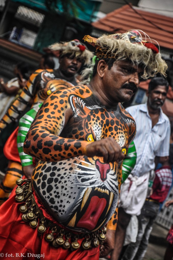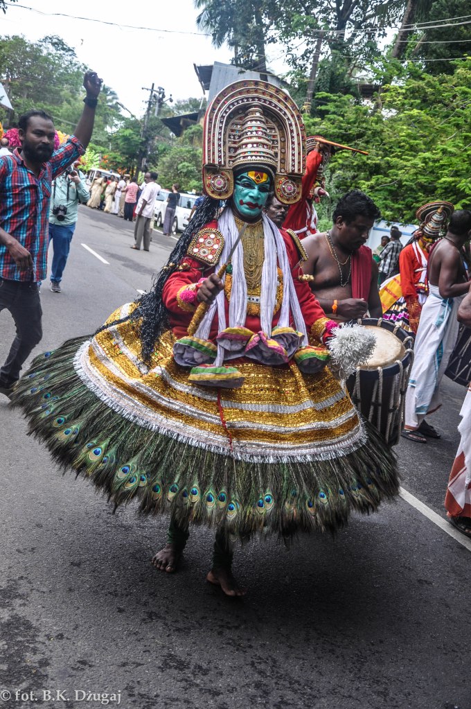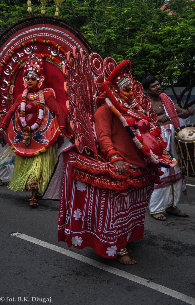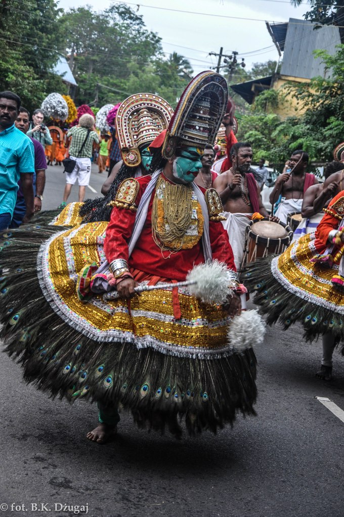 To, czego w paradzie z okazji Onam nie może zabraknąć to bóstwa. W korowodzie szli więc: władca bogów Śiwa (niebieski mężczyzna z trójzębem w ręku i wężem wijącym się wokół szyi), Kali (czarna postać z językiem wysuniętym z ust), oraz Durga (niebieska kobieta, również z wysuniętym językiem).