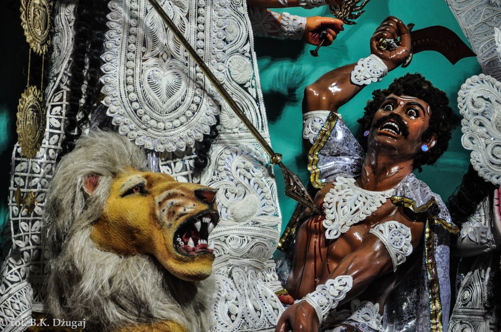 Personifikacja energii kosmicznej, uosobienie kobiecej siły i kobiecego gniewu, wojowniczka pokonująca zło – bogini Durga stanowi odwrócenie wizerunku kobiety indyjskiej jako istoty podporządkowanej mężczyźnie.