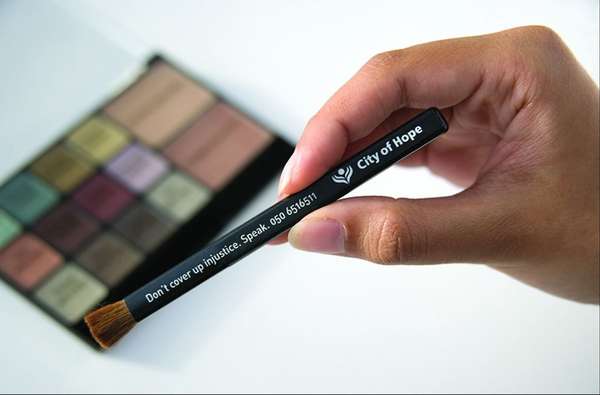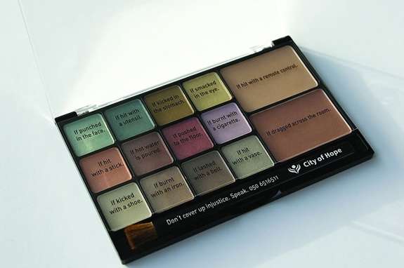 Jedną z najciekawszych kampanii społecznych przeciwko przemocy wobec kobiet w świecie arabsko-muzułmańskim wykorzystującym elementy popkultury była akcja zorganizowana przez City of Hope. Ten pierwszy w Zjednoczonych Emiratach Arabskich ośrodek dla maltretowanych kobiet przy wsparciu agencji reklamowej JWT Dubai w 2008 roku zainicjował kampanię It’s time you spoke. Twórcy akcji wykorzystali fakt, że kobiety, które padły ofiarą przemocy domowej, często usiłują ukryć siniaki, rany i opuchliznę pod makijażem. W ramach kampanii w centrach handlowych dawano klientom darmowe paletki cieni do powiek. Skromne czarne opakowanie kryło dwanaście rodzajów cieni do powiek i dwa odcienie różu. Pod poszczególnymi kolorami znajdowała się informacja, do czego najlepiej nadaje się dany odcień kosmetyku: if burnt with an iron (jeśli zostałaś oparzona żelazkiem), if dragged across the floor (jeśli wlókł cię po podłodze), if kicked in the stomach (jeśli zostałaś kopnięta w brzuch), if punched in the face ( jeśli oberwałaś w twarz) etc. Do paletki dołączony był ponadto pędzelek, na którym widniał napis: Don’t cover up injustice. Speak (Nie ukrywaj niesprawiedliwości. Mów) wraz z numerem City of Hope, gdzie ofiary przemocy mogły szukać pomocy.