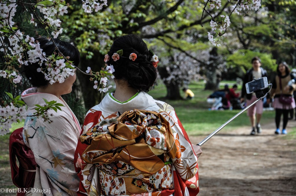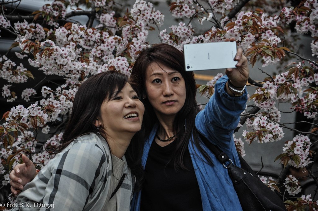 Jak wygląda japońskie hanami? Jak europejski piknik, tyle, że pod konkretnym drzewem. Hanami można praktykować wszędzie – w praku, na skwerach, we własnym ogrodku, byle pod drzewem sakury. Gdy wiśnie zaczynają kwitnąć tłumy Japończyków wylegają na ulice, by urządzić piknik w parku czy przespacerować się alejami ukwieconych drzew. Piknikowe menu jest dowolne, choć dominują tradycyjne japońskie słodycze z płatkami wiśni. O ile bowiem owoce sakury są niezbyt smaczne, o tyle płatki wręcz przeciwnie – dango, czyli ryżowe kulki lub nama yatsuhashi – rodzaj pierożków z Kioto, z sakurą smakują bosko. Niegdyś pod sakurą układało się wiersze lub malowało obrazy, dzisiaj robi się zdjęcia. Wiśniom lub z wiśnią, bo selfie z sakurą to plus dziesięć do lansu na Facebooku lub Instagramie.