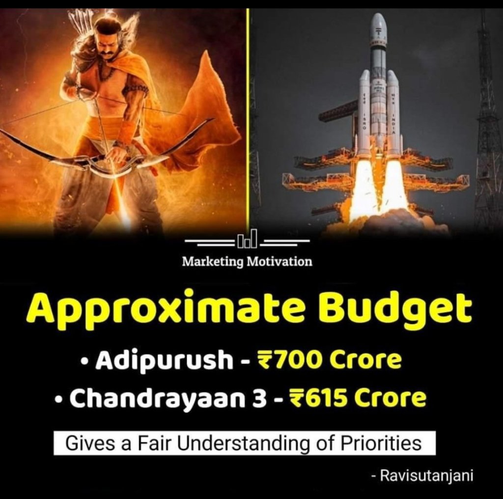 Dla wielu mieszkańców Indii warta skomentowania okazała się również kwestia wysokości budżetu oraz tego, czy projekt ten został właściwie sfinansowany. Memy, które odwoływały się do tego tematu zestawiały budżet misji ze środkami wykorzystanymi do produkcji filmów. Zarówno tych hollywoodzkich o wyprawach kosmicznych – ironicznie pokazując, że za znacznie mniejszą kwotę niż budżet filmu można NAPRAWDĘ polecieć na księżyc, jak i indyjskich. W tym drugim przypadku jednak wymowa nie była już tak przepełniona narodową dumą. Okazuje się bowiem, że budżet misji (wynoszący 75 mln dolarów) jest znacznie niższy niż indyjskiego filmu będącego współczesnym retellingiem hinduskiego eposu Ramajana. Film ten pt. Adipurush (dostępny również na platformie Netflix) spotkał się z mieszanymi recenzjami i zarzutami ze wszystkich stron politycznej sceny. Kosztował jednak naprawdę krocie.