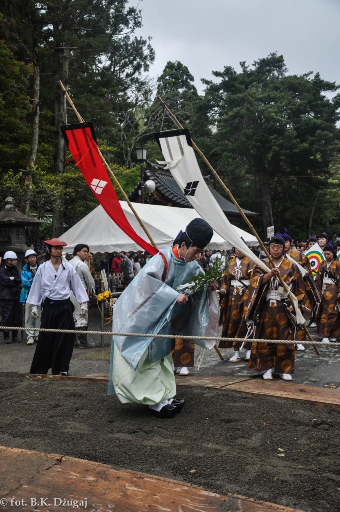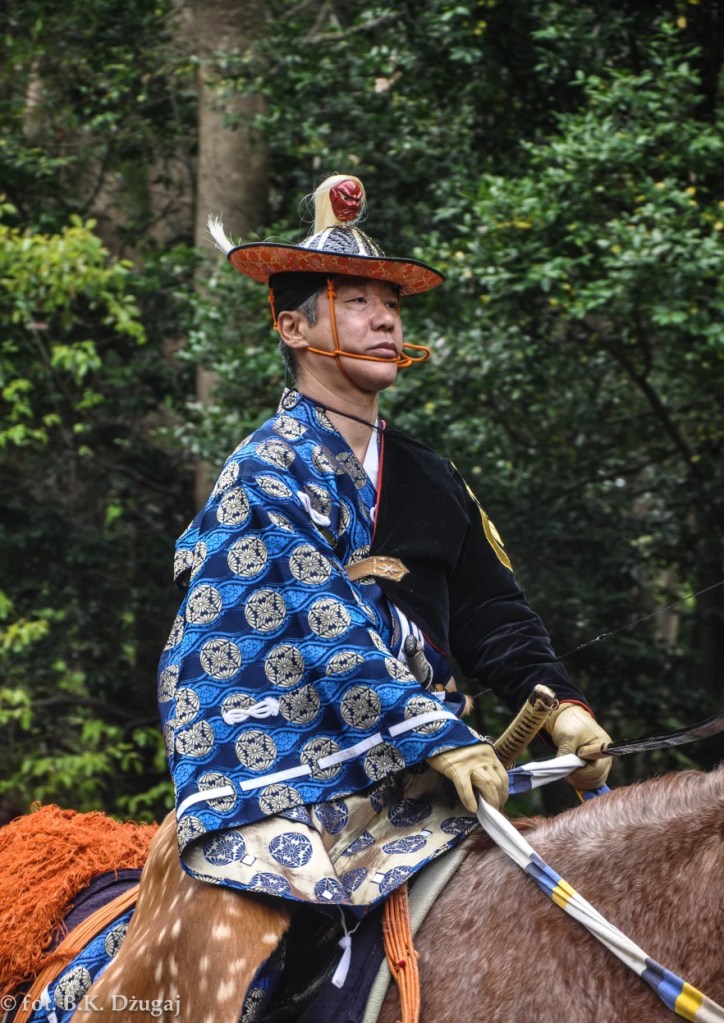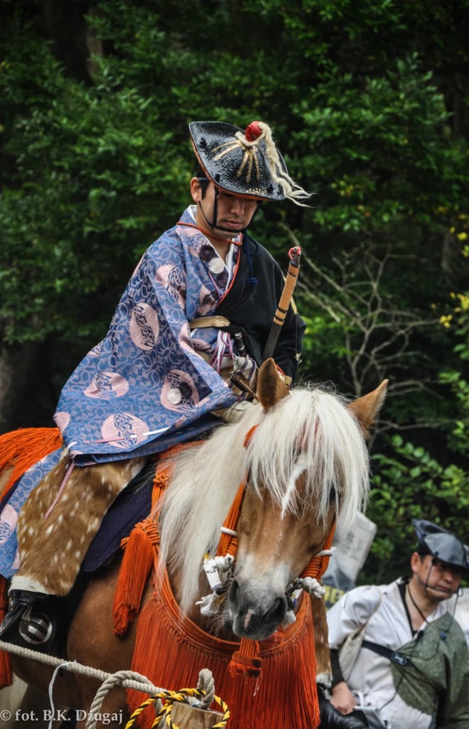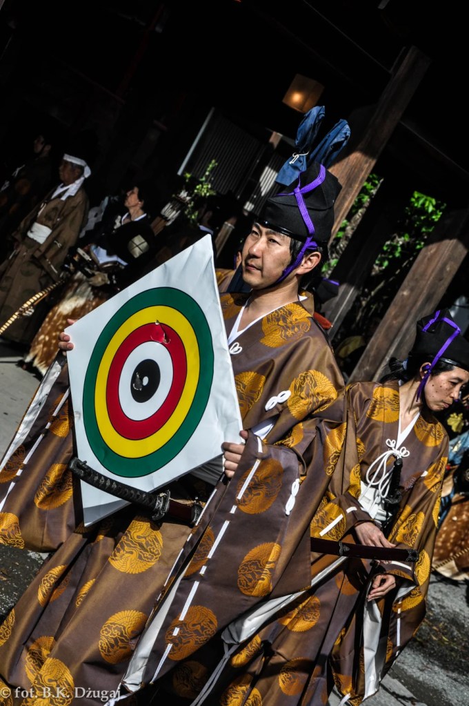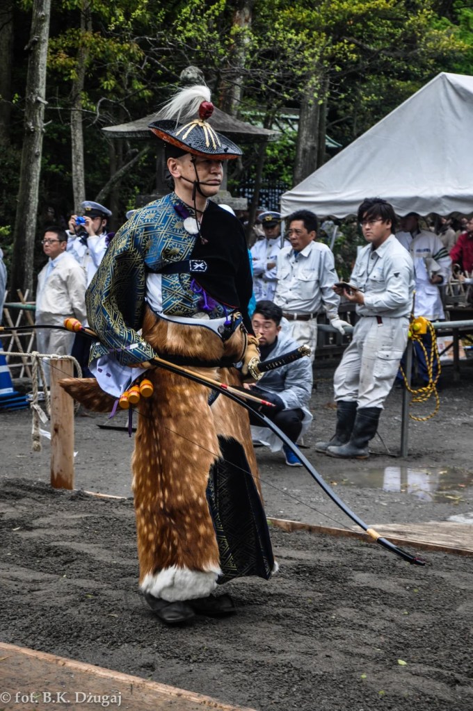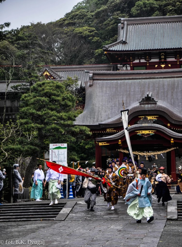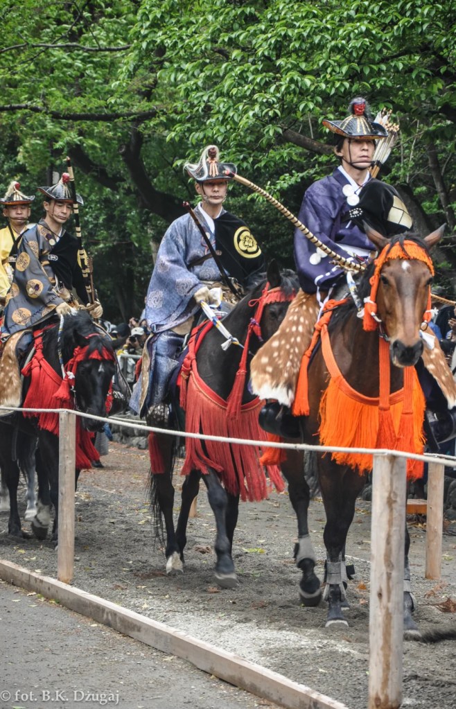 Japończycy kochają wszelkiego rodzaju festiwale, których korzeni szukać należy w kulturze ludowej i najbardziej pierwotnej formie shinto. Ja miłość tę podzielam, oczywistą oczywistością była więc moja obecność na Yabusame Shinji – festiwalu odbywającym się co roku w świątyni Tsurugaoka Hachimangu w Kamakurze. Hachiman, któremu przybytek ten jest poświęcony, to shintoistyczny bóg wojny, a zarazem opiekun Japonii i jej mieszkańców. Uważany jest również za patrona rodu shogunów Minamoto. Konne łucznictwo znane było w Japonii od IV wieku, pierwsza szkoła tej sztuki walki, Takeda, powstała natomiast w IX wieku, gdy konne łucznictwo zyskiwało znaczenie jako element shintoistycznego rytuału, którego celem było zabawienie bóstw spoglądających na Kraj Kwitnącej Wiśni z niebiańskich wyżyn. Założyciel szkoły Takeda, Minamoto no Yoshiari, na polecenie cesarza Uda, sformułował wówczas zasady turniejów yabusame, które w niemal niezmienionej formie obowiązują do dziś. Szczególną popularność konne łucznictwo zyskało jednak dopiero w wieku XII za panowania shoguna Minamoto no Yoritomo. Założyciel shogunatu w Kamakurze dostrzegał wagę yabusame jako elementu walki zbrojnej, rozrywki i części treningu samurajów, oraz rytuału religijnego. W 1187 roku Minamoto no Yoritomo ustanowił pierwszy turniej yabusame w świątyni Tsurugaoka Hachimangu w Kamakurze, który odbywa się do dziś, według zasad szkoły Takeda.