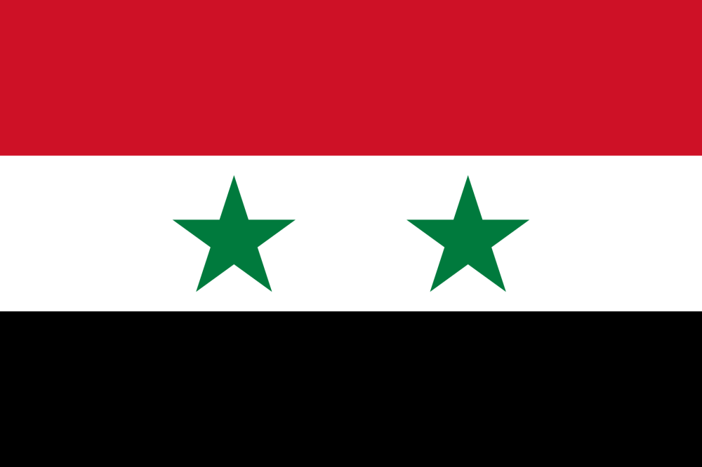 W latach 30. XX wieku ustanowiono Republikę Syryjską pod francuskim mandatem. Przyjęta wówczas konstytucja mówiła, że flaga tego kraju będzie podzielona na trzy równoległe i równe kolory: najwyższy zielony, potem biały, a następnie czarny, przy czym pas biały zawierał położone w linii prostej trzy czerwone pięcioramienne gwiazdy. Zielony kolor flagi oznaczał czterech kalifów prawowiernych, biały reprezentował Umajjadów, a czarny symbolizował Abbasydów. Pierwotnie trzy czerwone gwiazdy reprezentowały trzy dystrykty Syrii: Aleppo, Damaszek i Deir ez-Zor – z czasem symbolika ta się zmieniła i pierwsza gwiazda reprezentowała dystrykty Aleppo, Damaszek i Deir ez-Zor, druga Dżabal ad-Duruz, a ostatnia Sandżak.