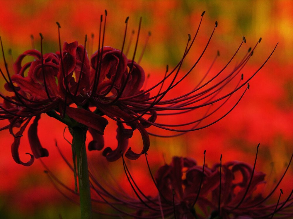 Japonie jest krajem nie tylko kwitnącej wiśni, ale też niezliczonej ilości kwiatów, którym w ciągu wieków przypisano symboliczne znaczenie. Wśród nich jednym z istotniejszych, a na pewno najciekawszych, gdy mowa o budzonych przezeń skojarzeniach, jest właśnie czerwona pajęcza lilia. Dość wspomnieć na zakończenie, że sezon jej kwitnienia jest niezwykle ważny i Japończycy chętnie poświęcaj czas, by odnajdywać miejsca występowania higanbany, by wprawić się w zadumę nad przemijaniem, śmiercią, ulotnością życia i ciągłą zmianą, oraz – a jakże! – by zrobić piękne zdjęcia, których, w przypadku tak spektakularnego kwiatu, nie sposób sobie odmówić.
