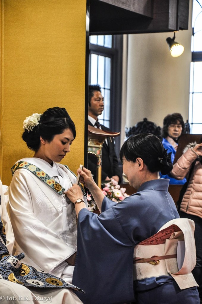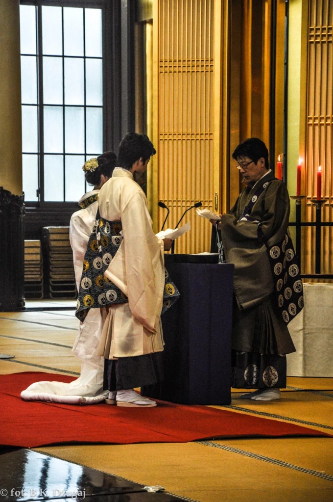 Do rzadkości należą butsuzen kekkon, czyli ślub w obrządku buddyjskim. Religia ta zarezerwowana jest raczej dla sfery śmierci, toteż buddyjska ceremonia ślubna nie cieszy się popularnością – wybiera ją zaledwie kilka procent młodych par. Uroczystość odbywa się w świątyni, prowadzi ją kapłan. Nowożeńcy składają przysięgę małżeńską na duchy przodków, stojąc przed posągiem Buddy. Miałam prawdziwego farta trafiając na tego typu ceremonię w buddyjskiej świątyni w Tokio.