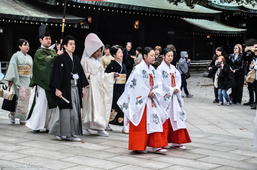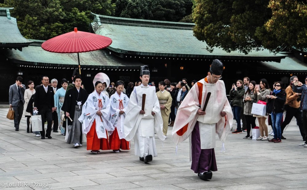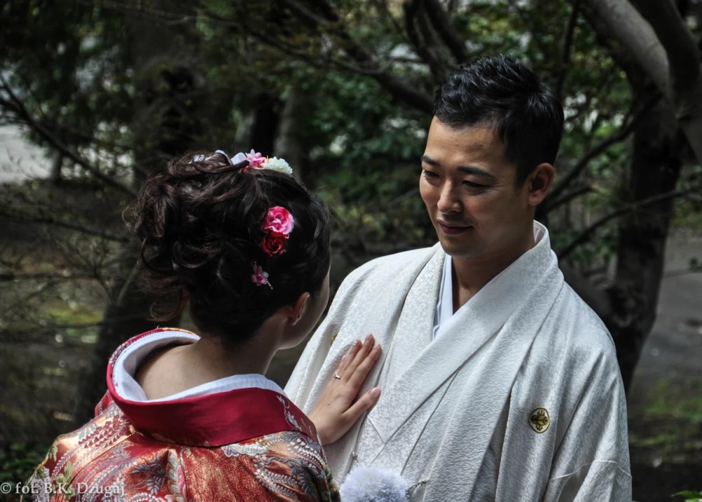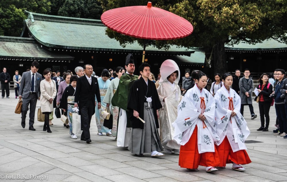 Obecnie średni wiek zawierania małżeństw przez Japończyków to 28-29 lat w przypadku mężczyzn oraz 26-27 lat w przypadku kobiet. Istnieją dwa rodzaje małżeństw: miai kekkon, czyli związek aranżowany przez rodziców oraz renai kekkon – małżeństwo z miłości. Jak już wspomniałam, japońską kulturę cechuje synkretyzm religijny, w efekcie którego związek małżeński można zawrzeć na kilka sposobów, niezależnie od wyznawanej na co dzień religii. Dla Japończyka nie stanowi problemu przedstawić nowo narodzone dziecko bogom sinto, wziąć ślub w stylu chrześcijańskim, dziadka pochować w obrządku buddyjskim, myśląc o sobie jednocześnie jako o ateiście.