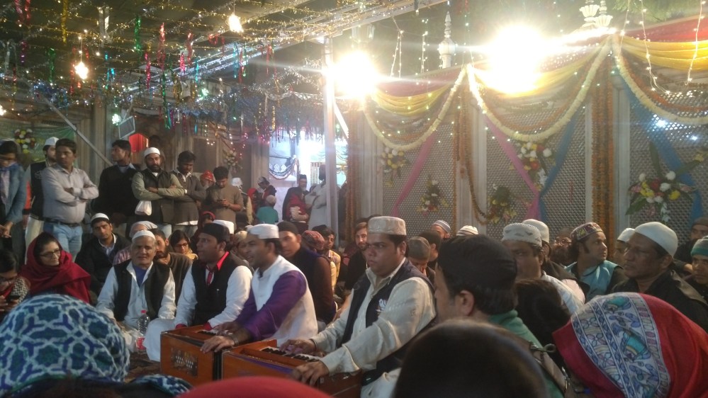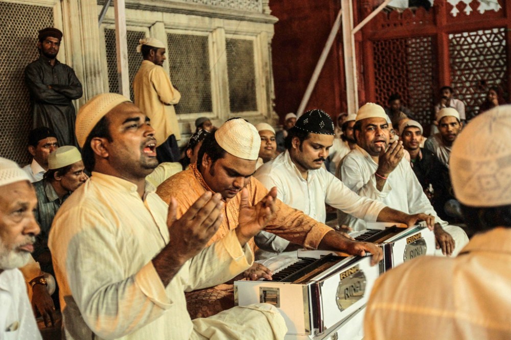 Jest już po zmroku, a ciasne korytarze sufickiego mauzoleum świętego Hazrata Nizamuddina Auliji w Delhi wypełniają tłumy ludzi spragnione mistycznych doznań. Alejki tego średniowiecznego labiryntu są prawdziwym bazarem, na którym sprzedaje się ubrania, chusty, muzułmańskie nakrycia głowy oraz symbole religijne związane z sufizmem. Główny dziedziniec mauzoleum, zwanego dargah zajmuje już spory tłum, a siedząca na marmurowej podłodze grupa muzyków zaczyna grać i śpiewać. Dwóch z nich gra na indyjskiej fisharmonii, dwóch innych na bębnach tabla i dholak. Za głównym śpiewakiem pełne pasji wersy pieśni powtarza chór. Publika, składająca się z przedstawicieli różnych religii, reaguje bardzo entuzjastycznie, kołysząc się lekko w rytm muzyki. Część osób niczym w transie słucha muzyki z zamkniętymi oczami. Tak zaczynają się mehfil-e-sama, czyli spotkania muzyczne, na których tłumy doświadczają duchowych wrażeń i mistycznych uniesień dzięki sufickiej muzyce zwanej qawwali.