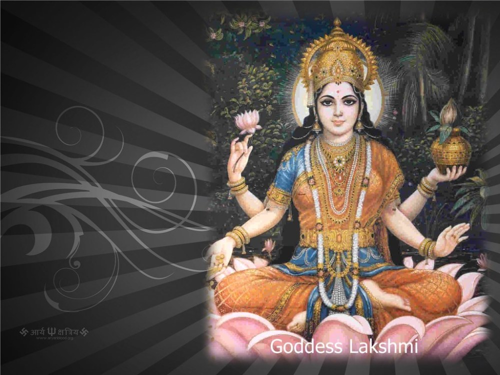 Lakszmi to bogini bogactwa, szczęścia i harmonii domowej, czczona szczególnie w Diwali z nadzieją na zapewnienie sobie pomyślności na kolejny rok. Według mitu bogini narodziła się z oceanu mleka podczas jego ubijania przez bogów i demony, gdy pragnęli wydobyć z niego nektar nieśmiertelności. Jej pojawienie się przyniosło światu dobrobyt i światło – dlatego w Diwali ludzie zapalają lampy i otwierają drzwi, by zaprosić Lakszmi do swoich domów.