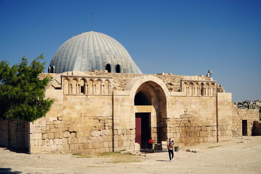 A gdy już nasycimy wzrok tym widokiem warto wybrać się do Pałacu Umajjadów, położonego w północnej części górnego poziomu Jebel Al Qala’a. Gwoli ścisłości: jest to nie tyle pałac, co kompleks pałacowy, zbudowany w pierwszej połowie VIII wieku – prawdopodobnie za panowania kalifa Hiszama. Podobnie jak Świątynia Herkulesa obecnie jest mocno zrujnowany i częściowo nie odkopany – odrestaurowana została głównie kopuła wejściowa. A co się na ten kompleks składa? Sala audiencyjna, cztery sklepione sale zgromadzeń i kolumnadowa droga plus – już poza murami – pałacowa łaźnia, meczet i cysterna.