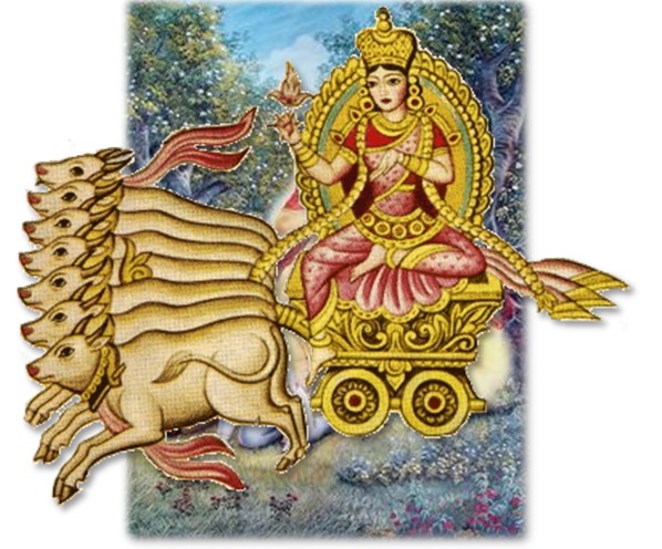 Motywy te splatają się z ideą, że bogactwo pochodzi z podziemia, gdzie Uszas przebywa nocą. O świcie wyłania się stamtąd, przynosząc ludziom dobra, zwłaszcza dary ofiarne na poranny rytuał ofiarowania świętej rośliny – somy. Jej powrót powtarza pierwotne uwolnienie jej z podziemnej niewoli i obdarowanie dobrami, które umożliwiają trwanie świata i ludzkiej społeczności.
